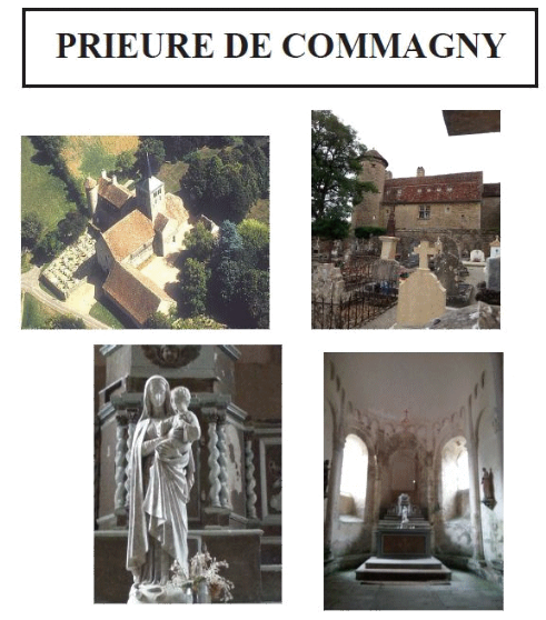 Le prieuré de Commagny, installé sur le bord d’un petit plateau calcaire à 2,1 km au sud-ouest du château et du village de Moulins-Engilbert. Il se compose d'une église priorale dédiée à Saint-Laurent dont l'une des chapelles attenantes est dédiée à Saint-Gervais et à Saint-Protais. Le bras nord du transept est prolongé par un bâtiment médiéval conventuel où logeait notamment le prieur. Juste à l'ouest de ce dernier, bordant le portail de l'église priorale, se tient le cimetière toujours en activité. Au sud du portail se trouve un second bâtiment dont la destination n'est plus connue aujourd'hui.